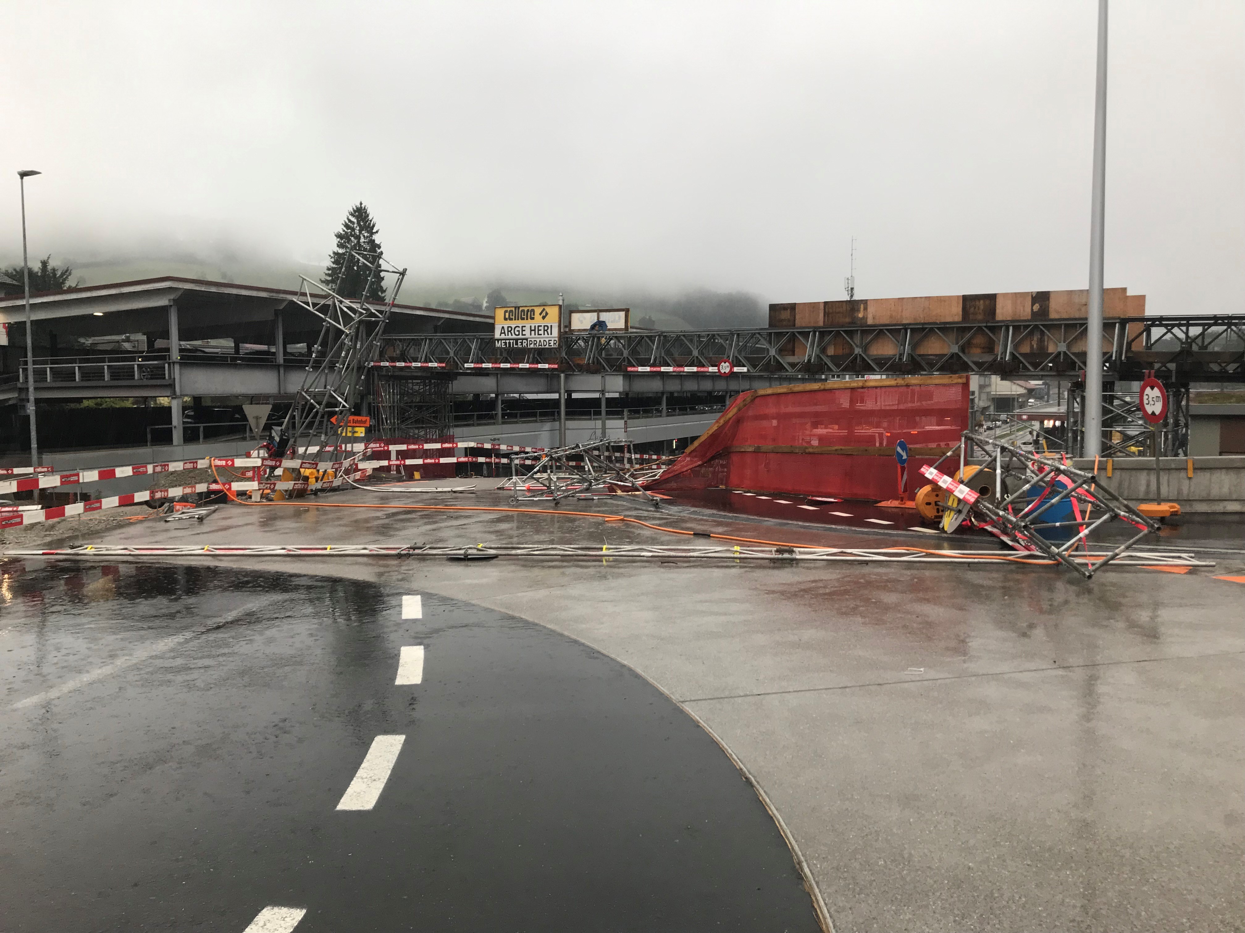 Lage beim Eintreffen: LKW hat Höhenbegrenzung touchiert, Fahrbahn gesperrt